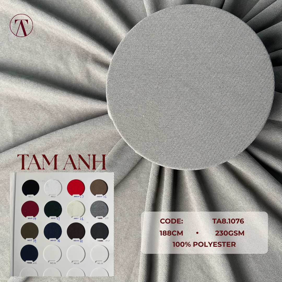 BST Vải Polo của Tâm Anh Textile bao gồm các dòng Cá Sấu – Poly – Cotton – Spandex, được lựa chọn trực tiếp từ các nhà máy lớn với tiêu chuẩn dệt mịn, lỗ mắt đều, bề mặt sang trọng. Vải co giãn tốt, thấm hút nhanh, form đứng đẹp và độ bền màu cao khi giặt nhiều lần.